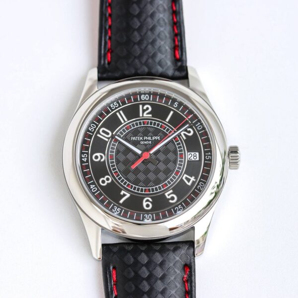 🕶️ Patek Philippe Calatrava 6007G Replica – Carbon Dial with Red Accents