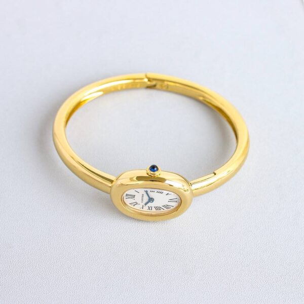 • 18k yellow-gold oval case; seamless bangle-style bracelet