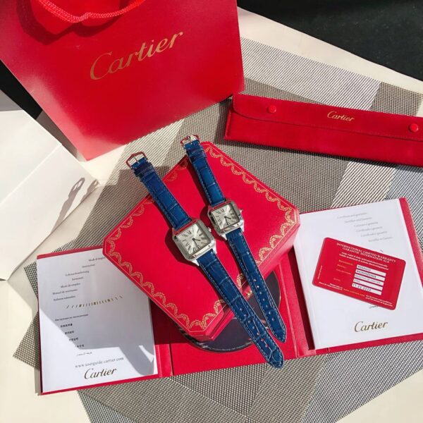 Be the first to review “Cartier Santos-Dumont Pair — Steel on Blue Alligator, Silver Roman Dial (His & Hers)” Cancel reply
