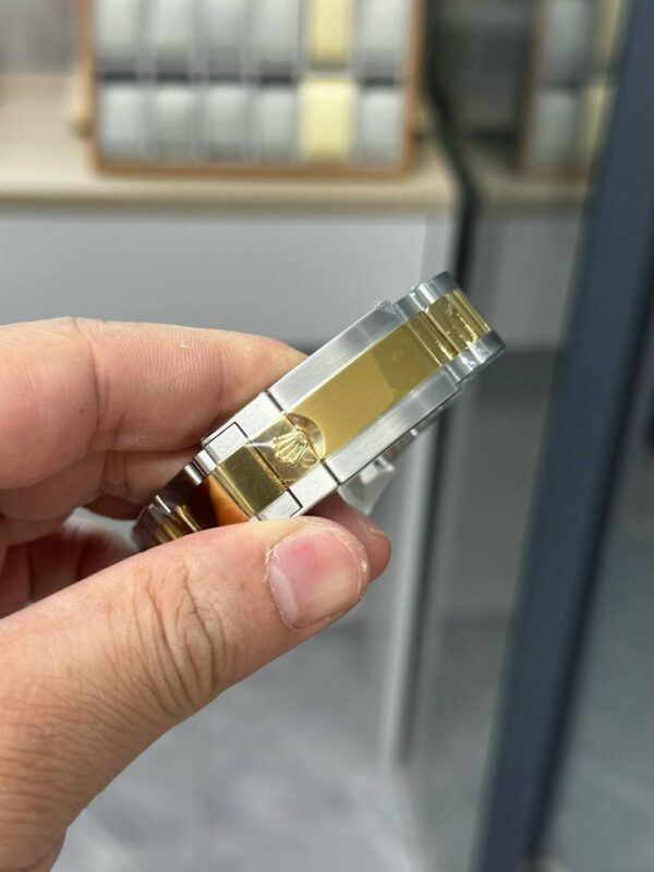 On the wrist, this watch communicates confidence without excess. The monochrome white-and-gold dial is bright but disciplined, and the two-tone bracelet adds warmth that pairs effortlessly with navy tailoring, charcoal suits, knit polos, or a simple white shirt and jeans. During the workweek, it reads executive-ready; at night, the gold accents catch soft lighting for an elegant glow. The 40 mm stance remains compact enough to slip under a cuff, and the bracelet’s solid-link construction distributes weight evenly to prevent pressure points during long days.