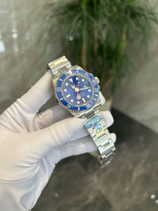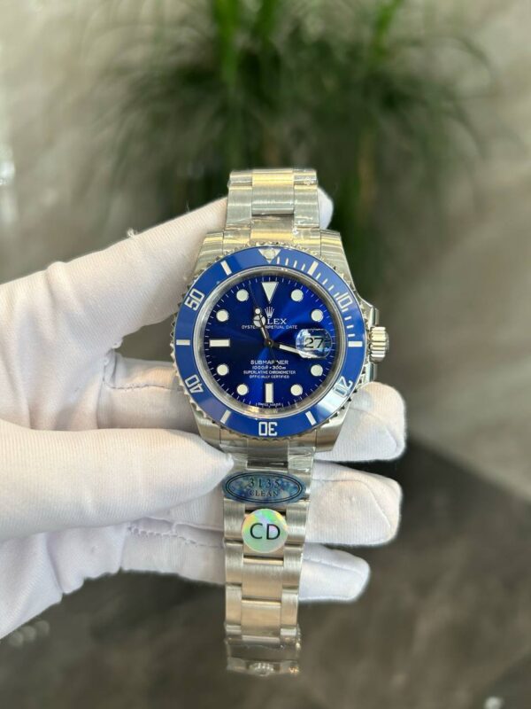 The Rolex Submariner Date blue replica brings the professional tool-watch DNA of the Submariner into a daily-wear package that feels modern, precise, and effortlessly versatile. If you have long admired the combination of a blue ceramic bezel, a matching blue dial, and the clean legibility that made the Submariner famous, this model captures that look with a focus on durability and comfort. At first glance you notice the balanced 41 mm profile, the clear minute track, and the bright, even lume that makes timing easy day or night. Look closer and the Cyclops date window stands proud over the crystal for quick calendar checks at a glance. Whether you’re commuting to the office, traveling to a coastal weekend, or dressing down for a beach dinner, the Rolex Submariner Date blue replica delivers the aesthetic enthusiasts expect—without the premium price of the original.